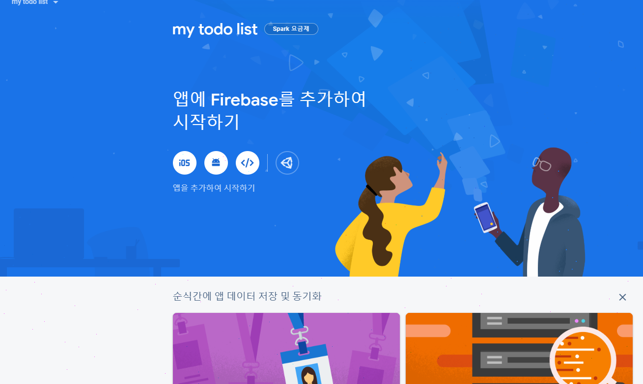 구글 로그인을 하고 Firebase 시작하기를 눌러줍니다.