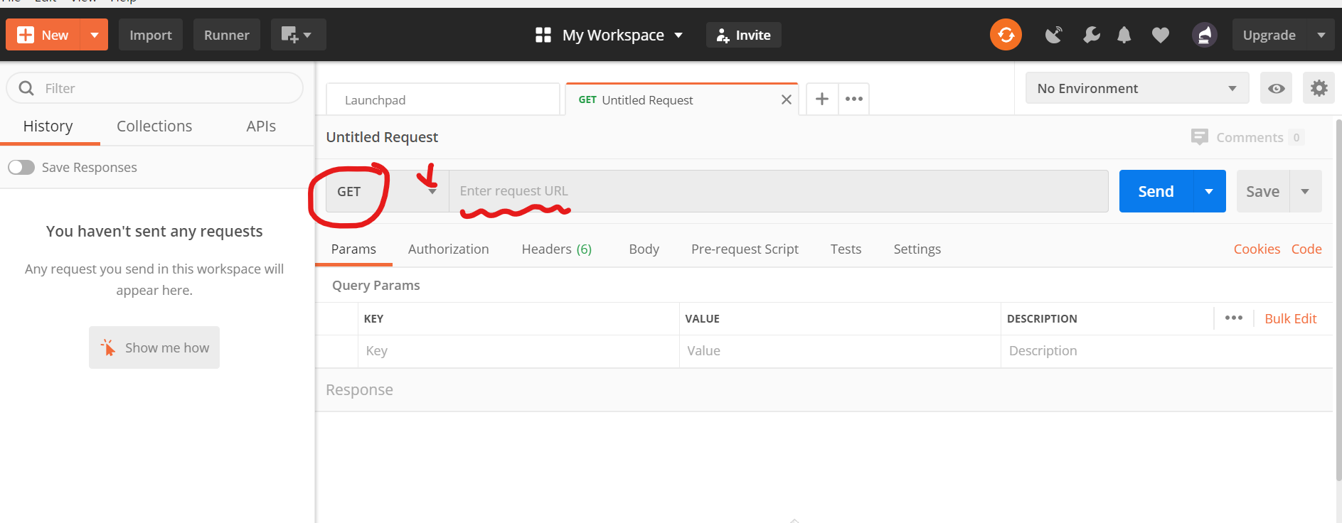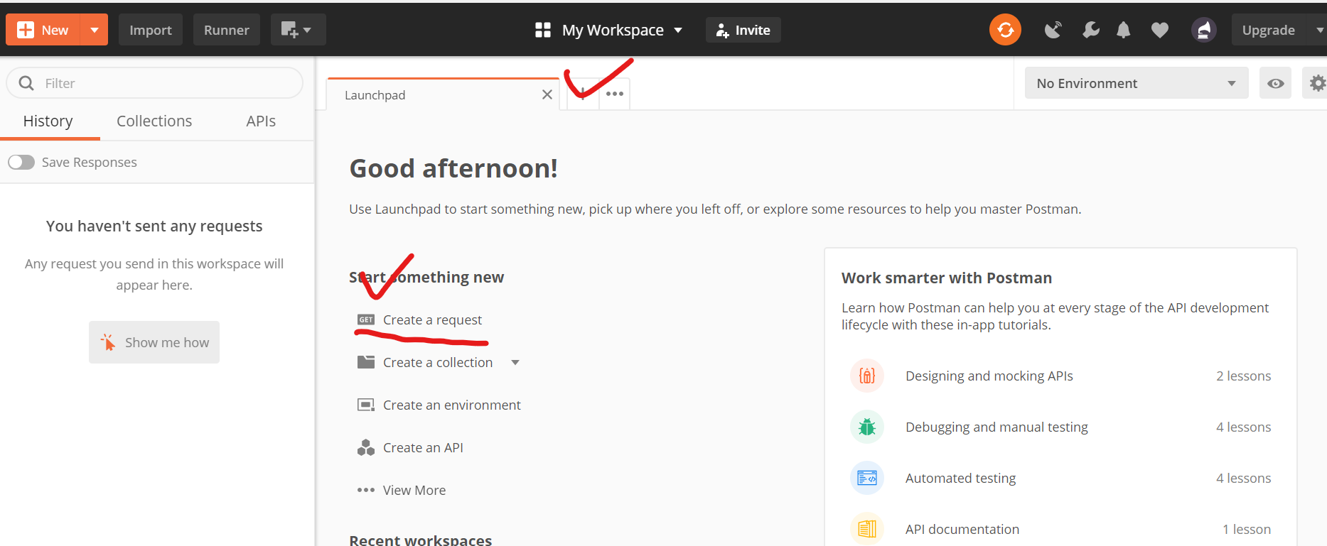 그 후 Create a request 또는 Launchpad 좌측에 + 기호를 클릭해줍니다.