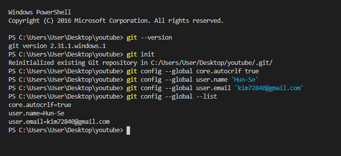 config --global user.email 'GitHub 회원가입할 때 등록한 email 입력'