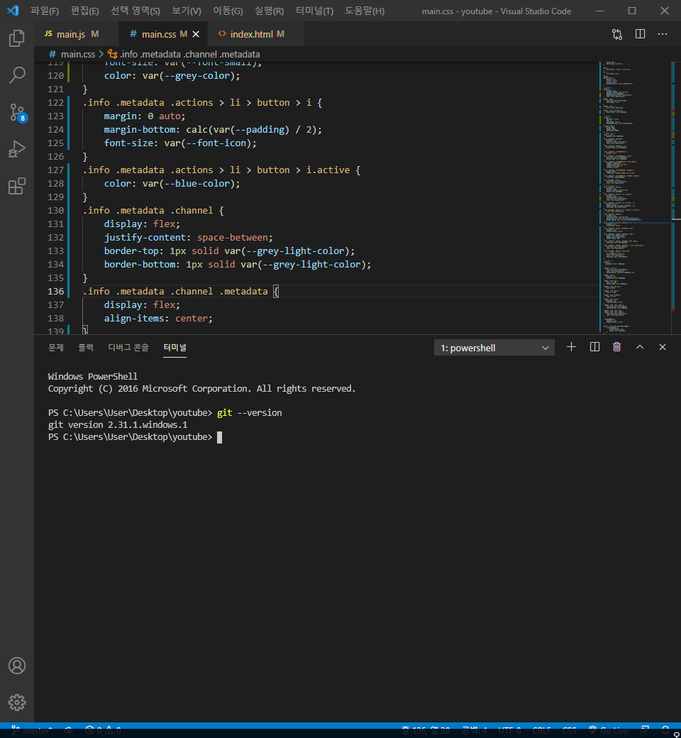 visualcode 혹은 다른 개발툴이나 cmd로 접속해서 업로드하고 싶은 파일 경로로 터미널에 git --version을 입력해주어서