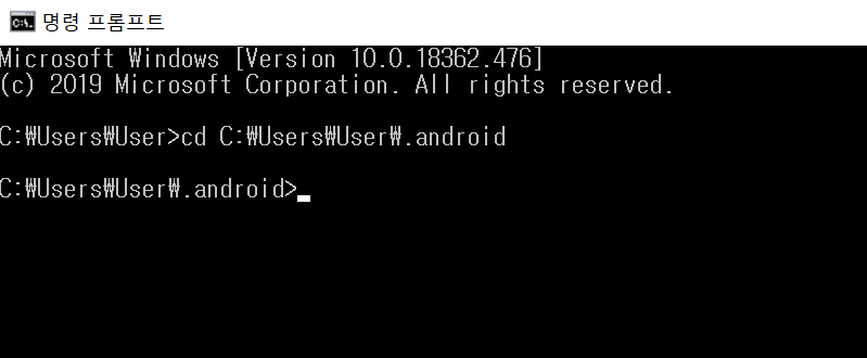 입력할 때에는 명령어 cd를 사용하여 '. android'라는 디렉터리로 이동하여 실행하여야 합니다.